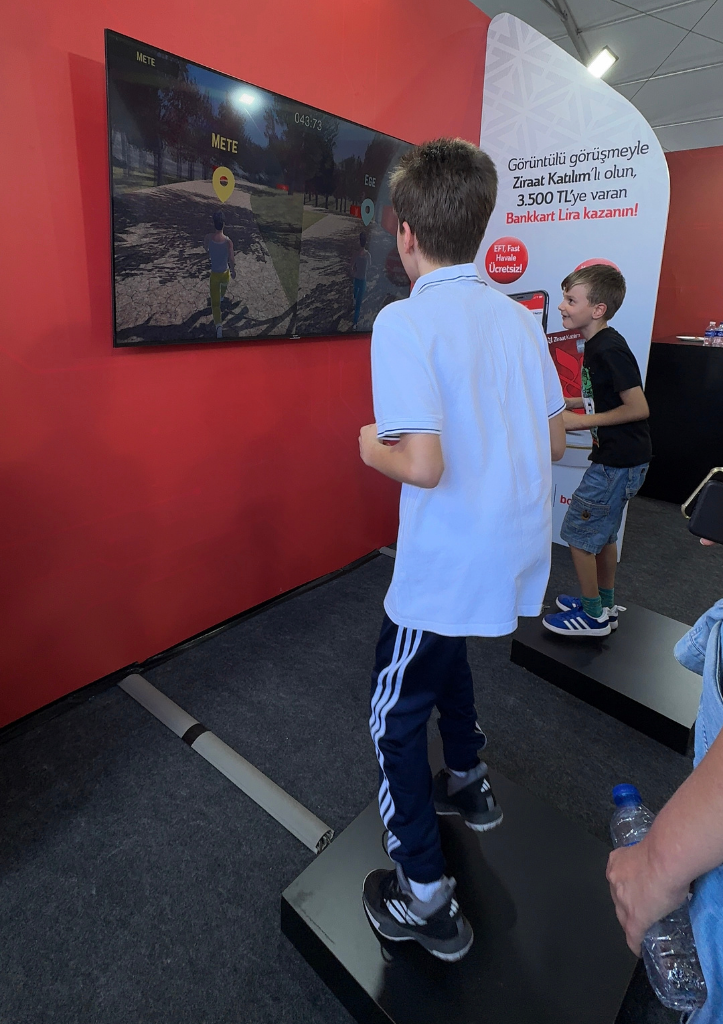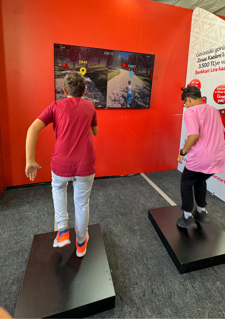 Katılımcıları kısa süreli bir koşu meydan okumasına davet eder. Akıllı koşu bandı veya sensörlü zemin + büyük ekran/LED kurulumu ile gerçek zamanlı hız, tempo (pace) ve mesafe değerleri izlenir. Kullanım süresi 1–2 dakika olup oyun içi kurgu ve marka giydirmeleri mevcuttur; start–finish kemeri, parkur HUD ve skor ekranı markanıza göre özelleştirilebilir.